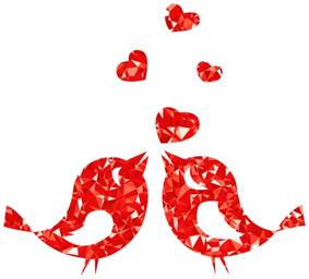 Keywords: love birds animals flying hearts romance couple valentine colorful prismatic chromatic rainbow abstract geometric art ruby gem triangles polygons