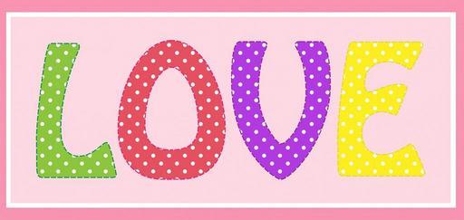 Keywords: love word text letter letters polka dots dots spots colorful bright yellow purple lavender pink green white frame framed art illustration