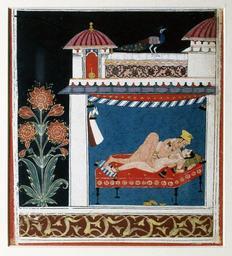 | Keywords: Love Scene Central India (Malwa).jpg en Caption Love Scene Central India Malwa 1660-1680 Opaque watercolor and gold on paper Overall 8 x 6 1/8in 20 3 x 15 6cm Brooklyn Museum Anonymous gift 84 201 3 Label Indian artists produced a small body of erotic imagery for their royal patrons usually in the same courtly styles used for other subjects This scene of lovemaking comes from a series that is painted in the bold minimalist style of the Malwa region Seventeenth-century Malwa paintings almost always feature figures inside a small pavilion with flat decorative elements to one side and below and little or no sense of spatial depth They are like simple stage productions but painted with a sophisticated palette that makes much use of subtle juxtapositions of color Here the hot red of the bed pops against the cool blue of the interior which in turn glows against the black of the night The exuberant flowers might reflect the blossoming of the couple ™s passion 1660-1680 http //www brooklynmuseum org/opencollection/labs/splitsecond/painting php id 108 Brooklyn Museum Anonymous gift 84 201 3 PD-old-100 Uploaded with UploadWizard 1660s paintings from India 17th-century paintings from India in the Brooklyn Museum 17th-century watercolor paintings from India Paintings of couples having sex Erotic art of India Watercolor paintings of couples of India |