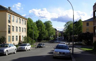 Keywords: Lovenskiolds gate Oslo.jpg Løvenskiolds gate and Arno Bergs plass Frogner Oslo own 2007-05-15 Mahlum Løvenskiolds gate