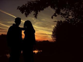 Keywords: lovers silhouette pair sunset tree longing love valentine's day afterglow clouds look
