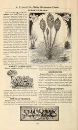 | Keywords: Lovett's illustrated catalogue of fruit and ornamental trees and plants for the autumn of 1891 (17001471551).jpg J T Lovett Co Hardy Herbaceous Plants <br> TURKEY'S BEARD <br> Xerophyllum asphode- <br> loideg This showy plant is not <br> often seen in gardens though it well <br> deserves a prominent place in the <br> border Considerable attention how- <br> ever is now being attracted to it in <br> England and when its merits are <br> better known it will deservedly be- <br> come popular It is a perfectly hardy <br> perennial with evergreen foliage <br> and when in bloom presents a showy <br> tropical appearance The large <br> flower heads or clusters are from six <br> to ten inches long by three inches in <br> diameter pure white and are borne <br> on stalks of from two to four feet in <br> height single clumps producing as <br> many as eight of these heads They <br> remain in a-ood condition for a long <br> time and are excellent for cutting <br> Its evergreen and graceful foliage <br> large flowei heads and general showy <br> appearance render this a beautiful <br> and exceedingly valuable plant We <br> quote the following from the London <br> Garden <br> Turkey's Beard Xerophyllum <br> asphoddoidett is one of those old- <br> fashioned plants that are rare in gar- <br> dens Two splendid m isses were ex- <br> hibited by Lord Wabingham at the <br> recent Royal Botanic show and were the prettiest things there among hardy flowers 20c <br> HARDY CANDYTUFT I flowers are large and of a lovely pure white color <br> Iberi seinpervireiis a handsome shrub- yellow centres exceedingly beautifuland effec- <br> tive for border planting and flne for cutting 20c <br> DESMODIUM <br> Pendnlifloruin A beautiful shrubby plant <br> with pretty foliage and in autumn bright purple <br> flowers appear at the axils of the leaves and remain <br> until frost rendering the plant most charmingly at- <br> tractive Of rather pendulous he bit and very hand- <br> some It is so profuse in bloom that the plant when <br> in flower resembles an immense buquet and is ex- <br> ceedicgly airy and graceful Very desirable for bor- <br> I der planting 25c <br> HORNED POPPY <br> Glaucium luteum One of the most showy <br> and desirable species remarkable for its beautiful <br> Poppy-like plant and handsome yellow flowers The <br> leaves are deeply cut fern-like with a silvery-white <br> or glaucous hue The flowers are borne on tall slen- <br> der stems and of a bright golden yellow very grace- <br> ful and showy It blooms profusely all summer <br> and is a decidedly handsome and ornamental plant <br> both in foliage and bloom <br> by plant with dark dwarf evergreen foliage flow- <br> ers pure white produced in close heads and com- <br> pletely covering the plant with bloom in spring <br> Very flne and desirable either for outdoor planting or <br> for forcing 20c <br> CHRYS Ajn THEMUM <br> Ulisinosnni a flne cecorative plant and one <br> of the best hardy perennials producing flowers in <br> great abundance from September to hard frost These <br> 56 42764508 136632 68527 Page 56 Text http //www biodiversitylibrary org/page/42764508 1891 10 5962/bhl title 68527 Henry G Gilbert Nursery and Seed Trade Catalog Collection ; J T Lovett Company ; J T Lovett Company Biodiversity Heritage Library Lovett's illustrated catalogue of fruit and ornamental trees and plants for the autumn of 1891 Catalogs Commercial catalogs J T Lovett Company Little Silver New Jersey Plants Ornamental Seeds U S Department of Agriculture National Agricultural Library bhl page 42764508 dc identifier http //biodiversitylibrary org/page/42764508 bhlGardenStories Candy Tuft Turkey's Beard j t lovett company little silver new jersey plants ornamental u s department of agriculture national agricultural library bhlgardenstories candy tuft turkey's beard Information field Flickr posted date ISOdate 2015-04-01 CC-BY-2 0 BioDivLibrary https //flickr com/photos/61021753 N02/17001471551 2015-08-23 20 53 52 cc-by-2 0 PD-old-70-1923 Lovett's illustrated catalogue of fruit and ornamental trees and plants for the autumn of 1891 Photos uploaded from Flickr by FĂŚ using a script |