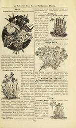 | Keywords: Lovett's illustrated catalogue of fruit and ornamental trees and plants for the autumn of 1891 (16814870690).jpg J T Lovett Co Hardy Herbaceous Plants <br> IRIS <br> Japan Iris I Kcempferi The most beautiful <br> species with blue flowers delicately veined and <br> spotted with yellow Foliage narrow a free bloomer <br> and fine for borders <br> LOBELIA <br> Cardinal Fiower or Wild Scarlet Sage <br> L cardinalis A <br> showy and hardy <br> border plant one of <br> the best in cultiva- <br> tion The flowers ap- <br> pear in late summer <br> in dense spikes of a <br> vivid scarlet or car- <br> dinal color Said to <br> be the most brilliant <br> and vivid in color of <br> all flowers in exis- <br> tence producing a <br> most striking effect when contrasted with the dark <br> green of neighboring foliage <br> MOSS PINK <br> Plilox subulata Pink White A dwarf <br> of all the Iris family Entirely hardy and succeeds best <br> In a moist soil The flowers are very large and hand- <br> some and diflfer in form from ordinary kinds being <br> broad and flat; present a remarkable variety of color <br> from pure white and ranging through the various <br> shades of blue purple and violet with occasional <br> markings of yellow and white It is quite distinct <br> from all the other species and is a valuable acquisi- <br> tion Mixed colors <br> German Iris I Oerma7iica ~We offer a <br> choice assortment of <br> the finest and best <br> named varieties such <br> as <br> AUREA rich golden <br> yellow Celeste del- <br> icate pale lavender <br> Donna MARiA white <br> shaded with laven- <br> der IMOGENE Ware <br> clear delicate laven- <br> der La Tendre <br> pale violet or laven- <br> der ; very fine MAD <br> Chereau white vein- <br> ed and feathered vio- <br> let ; very showy Pal- <br> lida SPECiosA pale <br> Indigo-blue Rebecca buff and maroon shaded <br> yellow Sampson rich golden-yellow and maroon <br> veined white Sappho blue and indigo ; fine <br> Iris cristata A beautiful species with short <br> flower-stalks and blooming early The flowers are <br> pale blue shaded fringed and dotted with orange- <br> yellow producing a charming effect <br> Florentine Iris J Ftormtma Produces <br> large flowers in great abundance White tinged and <br> veined with blue changing later to a bright creamy <br> color Fragrant <br> Siberian Iris I Siberica A tall handsome <br> m <br> plant forming a dense mat and Is completely cov- <br> ered in early spring with beautiful bright pink <br> flowers The white form Is the same In all but color <br> of bloom Unexcelled for bedding or carpeting- <br> MOUNTAIN FLEECE <br> Polygonum amplexicaule var oxyphyl- <br> lum One of the best hardy herbaceous plants that <br> has been introduced for some time The root throws <br> up a compact mass of stalks from 3 to 4 feet high well <br> furnished with foliage to the ground The flowers <br> which are borne in large panicles are white and small <br> but very numerous and take on a pink tinge with <br> age on the approach of frost They bloom from early <br> September to frost and are very fragrant The great <br> white masses of bloom at a distance may well be <br> likened to fleecy clouds <br> POPPY <br> Oriental Poppy Papaver orienfaZe Very <br> handsome and showy <br> Flowers of immense <br> size of dazzling crim- <br> son color with a <br> large black blotch at <br> the base of each petal <br> Leaves dark green <br> flnely cut and like <br> ferns A strikingly <br> effective plant for use <br> in the border <br> 42764503 136632 68527 Page 51 Text http //www biodiversitylibrary org/page/42764503 1891 10 5962/bhl title 68527 Henry G Gilbert Nursery and Seed Trade Catalog Collection ; J T Lovett Company ; J T Lovett Company NameFound Lobelia NameConfirmed Lobelia sect Rhynchopetalum Fresenius Benth EOLID 2895791 NameFound Papaver NameConfirmed Papaver EOLID 11209036 NameBankID 2645649 NameFound Plilox subulata NameConfirmed Phlox subulata L EOLID 580838 NameBankID 458091 NameFound Polygonum amplexicaule NameConfirmed Polygonum amplexicaule EOLID 2904134 NameBankID 3476341 NameFound Siberica NameConfirmed Siberica NameBankID 5328274 Biodiversity Heritage Library Lovett's illustrated catalogue of fruit and ornamental trees and plants for the autumn of 1891 Catalogs Commercial catalogs Fruit J T Lovett Company Little Silver New Jersey Plants Ornamental Seeds Shrubs U S Department of Agriculture National Agricultural Library bhl page 42764503 dc identifier http //biodiversitylibrary org/page/42764503 bhlGardenStories Poppy Iris Lobelia Moss Pink j t lovett company little silver new jersey plants ornamental u s department of agriculture national agricultural library bhlgardenstories moss pink Information field Flickr posted date ISOdate 2015-04-01 CC-BY-2 0 BioDivLibrary https //flickr com/photos/61021753 N02/16814870690 2015-08-23 20 52 49 cc-by-2 0 PD-old-70-1923 Lovett's illustrated catalogue of fruit and ornamental trees and plants for the autumn of 1891 Photos uploaded from Flickr by FĂŚ using a script |