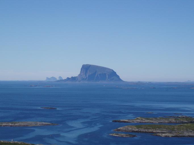 Keywords: Lovundfjell.JPG The island and mountain Lovund on the sea seen from Dønnesfjellet Dønna Norway The island Træna in the background Own 11/7-2007 Sondrekv Lovundfjellet Lovund