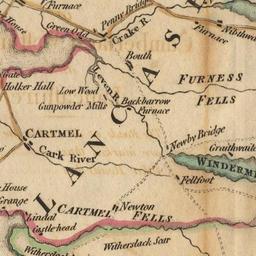| Keywords: Low Wood Gunpowder Mills map.jpg en Detail of A Map of the Lakes in Cumberland Westmorland and Lancashire scale about 3 5 miles to 1 inch in Guide to the Lakes 3rd edition 1821 by Thomas West http //www geog port ac uk/webmap/thelakes/html/lgaz/ws02sd38 htm Engravers Cornelius Pass and N Wolletern 1821 PD-old-100 1821 maps Cornelius Pass Furness Explosives manufacturers |