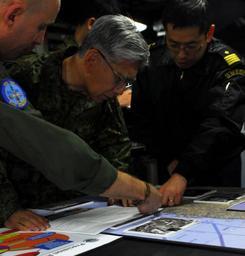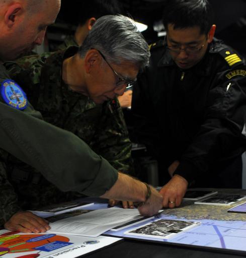 | Keywords: Lt. Gen. Eiji Kimizuka on board USS Ronald Reagan -31 Mar. 2011 a.jpg PACIFIC OCEAN March 31 2011 - Lt Gen Eiji Kimizuka commanding general of Joint Task Force Touhoku views imagery of area effected by Japan's earthquake and subsequent tsunami in the Carrier Air Wing Intelligence Center aboard the aircraft carrier USS Ronald Reagan CVN 76 Kimizuka visited Ronald Reagan to tour operations supporting Japan's earthquake and tsunami relief efforts Ronald Reagan is off the coast of Japan to provide disaster relief and humanitarian assistance to Japan as directed in support of Operation Tomodachi U S Navy Photo by Mass Communication Specialist 3rd Class Dylan McCord <div style font-size 92 >cropped from</div> 110331-N-SB673-094 Navy http //www flickr com/photos/us7thfleet/5578647129/in/photostream <div style font-size 84 >ă ”Uploaded to Flickr by http //www flickr com/people/us7thfleet/ Commander U S 7th Fleetă •</div> 2011-03-31 Dylan McCord U S Navy 110px PD-USGov-Military-Navy 2011 TĹŤhoku earthquake relief by the JSDF Operation Tomodachi in March 2011 Eiji Kimizuka People of the JMSDF Guests aboard USS Ronald Reagan CVN-76 Taken with Nikon D200 |
