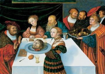 | Keywords: Lucas Cranach d.Ä. - Gastmahl des Herodes (Städelsches Kunstinstitut).jpg Artwork Creator Lucas Cranach I Gastmahl des Herodes Feast of Herod 1533 Oil tempera lime cm 80 113 Städel http //www staedelmuseum de/sm/index php StoryID 1093 websiteLang de Städelsches Kunstinstitut Frankfurt http //www clarus-cranach de/LucasCranachStadel html www clarus-cranach de Other versions http //www wga hu/art/c/cranach/lucas_e/06/1salome5 jpg Image by the Web Gallery of Art PD-old-100 Religious paintings by Lucas Cranach I Gastmahl des Herodes DEFAULTSORT Cranach 1; Gastmahl des Herodes; Städelsches Kunstinstitut German paintings in the Städel Feast of Herod 1530s paintings from Germany 1530s paintings in Hesse 1533 paintings 16th-century oil on panel paintings in Germany 16th-century paintings of John the Baptist 16th-century paintings of Salome 16th-century religious paintings in Germany Feasts in art Gestures Green textiles in art People reaching objects Refusal Renaissance paintings of biblical figures Tempera on panel 1530s religious paintings |
