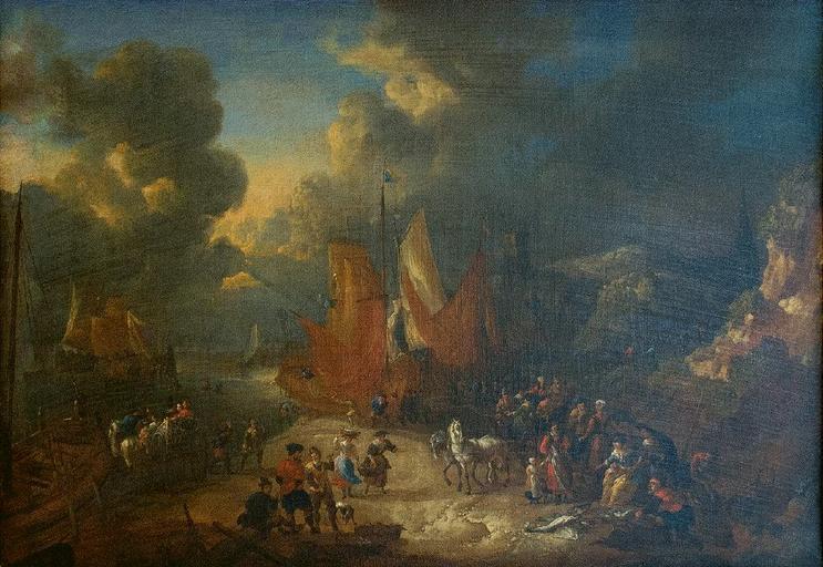 Keywords: Lucas Smout the Younger and Pieter Bout - Harbour and Fish Market.jpg Artwork Creator Lucas Smout the Younger Creator Pieter Bout en Harbour and Fish Market Unloading the Catch at the Beach of Scheveningen 1686 - 1713 http //www scheveningen1813-2013 nl/strandschilders/17001800/smout/2smout/index html Oil canvas cm 40 57 Institution Musée des beaux-arts de Quimper Pieter Bout painted the figures Other versions PD-old-100 Lucas Smout the Younger Pieter Bout Paintings in Musée des Beaux-Arts de Quimper |