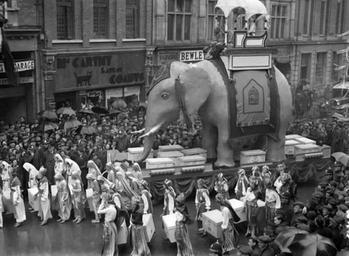 | Keywords: parade elephant howdah irish hospital sweepstakes irishhospitalsweepstakes irish sweep irishsweep the sweep thesweep costumes crowds umbrellas garage mccarthys coady's coadys player's please playersplease bewley's bewleys sweet afton sweetafton car policemen garda síochána gardasíochána float march 1935 1930s thirties independent newspapers collection independentnewspaperscollection advertising tusks national library of ireland nationallibraryofireland blackandwhite monochrome black and white Irish Hospital Sweepstakes parade through Dublin in late March 1935. Before every draw of winning tickets, there was a parade through the city, with all of the tickets carried in the boxes you can see in this photo... Initially, couldn't work out what street this is! However, the inimitable Gerry Ward galloped to the rescue, so we now know this photo was taken on Middle Abbey Street, Dublin. Lucky Coady's, the main (and allegedly luckiest) shop for buying Sweepstakes tickets was at 39 Dame Street. This, however, is "McCarthy late of Coady's". Oh, and the black cat on the shop sign is Big Tom, the Sweepstakes mascot. If you're interested in knowing more about the Irish Hospital Sweepstakes, this review by Turtle Bunbury of Dr. Marie Coleman's 2009 book, The Irish Sweep is really good. Date: Late March 1935 NLI Ref.: IND_H_2997 Irish Hospital Sweepstakes parade through Dublin in late March 1935. Before every draw of winning tickets, there was a parade through the city, with all of the tickets carried in the boxes you can see in this photo... Initially, couldn't work out what street this is! However, the inimitable Gerry Ward galloped to the rescue, so we now know this photo was taken on Middle Abbey Street, Dublin. Lucky Coady's, the main (and allegedly luckiest) shop for buying Sweepstakes tickets was at 39 Dame Street. This, however, is "McCarthy late of Coady's". Oh, and the black cat on the shop sign is Big Tom, the Sweepstakes mascot. If you're interested in knowing more about the Irish Hospital Sweepstakes, this review by Turtle Bunbury of Dr. Marie Coleman's 2009 book, The Irish Sweep is really good. Date: Late March 1935 NLI Ref.: IND_H_2997 |