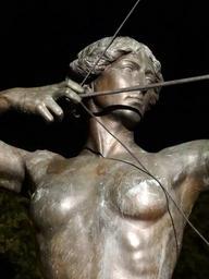 Keywords: luczniczka bydgoszcz statue sculpture figure artwork park bow and arrow closeup