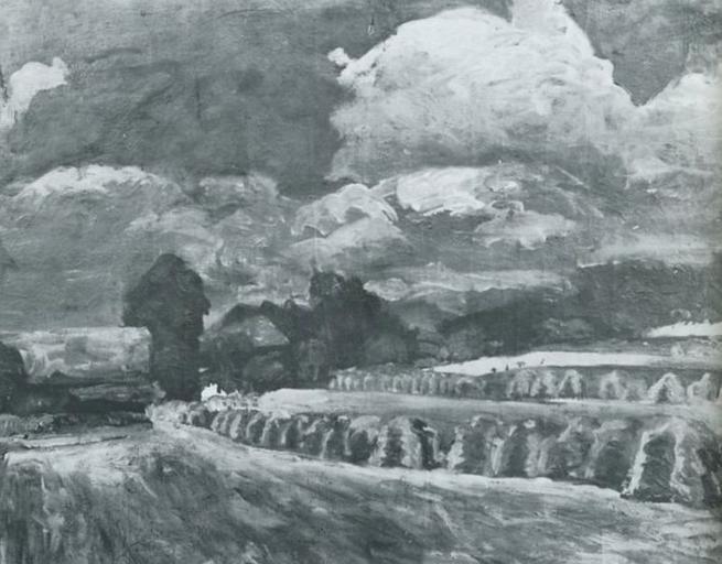 | Keywords: Ludvik Vrečič - Polje z žitnimi snopi.jpg Artwork Creator Ludvik Vrečič s 1930 oil canvas http //www galerija-ms si/razstave/pretekle-razstave/1987/panonska-motivika-v-likovnih-delih-ludvika-vrecica-karla-jakoba-lajcija-pandurja-in-franca-kharja html PD-old-auto 1945 1930s oil on canvas paintings Paintings by Ludvik Vrečič 20th-century oil on canvas paintings in Slovenia 20th-century landscape paintings in Slovenia 1930s landscape paintings Black and white reproductions of paintings in color |