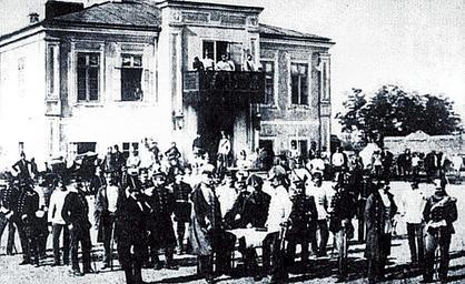 | Keywords: Ludwig Angerer - Coronini and his troops in front of the Meitani House.jpeg Photograph of the Austrian general Johann Coronini-Cronberg and his troops in front of the Meitani House in Bucharest scanned from an issue of Magazin Istoric ca 1853 Creator Ludwig Angerer PD-old-100 1853 in Bucharest Military of Austria-Hungary Military history of Austria Ludwig Angerer Johann Baptist Coronini-Cronberg | ||||
