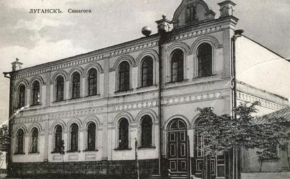 | Keywords: Luhansk Synagogue.jpg ru Хо альная синагога Бывшая ул Банковская Т Шевченко Луганск before 1917 Отк ытка author Custom license marker 2013 08 27 PD-Ukraine Uploaded with UploadWizard Synagogues in Luhansk Oblast Buildings in Luhansk Historical images of Luhansk |