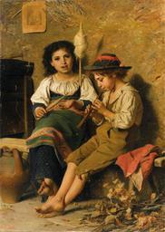 | Keywords: Luigi Bechi Spinnerin und Flötenspieler.jpg Spinnerin und Flötenspieler signiert L Bechi Öl auf Leinwand 125 5 x 88 cm http //www dorotheum com by 1919 Luigi Bechi 1830 “1919 PD-old-auto-1923 1919 Images from Dorotheum Luigi Bechi Spinning in art Flutists in art Children in art Paintings of boys playing musical instruments |