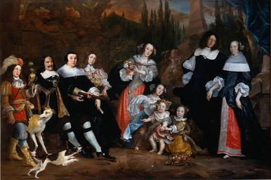 | Keywords: Luitenant-Admiraal Michiel Adriaensz. de Ruyter en zijn familie door Jurriaen Jacobson 1662.jpg Artwork Q17330483 Creator Juriaen Jacobsz title Michiel de Ruyter and his family <ref>https //www rijksmuseum nl/collectie/SK-A-2696 Michiel de Ruyter en zijn familie - Rijksmuseum Amsterdam - National Museum for Art and History </ref> Michiel de Ruyter en zijn familie <ref>https //www rijksmuseum nl/collectie/SK-A-2696 Michiel de Ruyter en zijn familie - Rijksmuseum Amsterdam - Nationaal Museum voor Kunst en Geschiedenis </ref> Alternate titles 1662 Oil on canvas cm 269 406 Institution Rijksmuseum Depot accession number SK-A-2696 object history ProvenanceEvent 1914-04 purchase LangSwitch vom the le het Rijksmuseum Amsterdam Jhr H A Elias credit line LangSwitch Purchase with support from the Aankoop met steun van de Vereniging Rembrandt SK-A-2696 www rijksmuseum nl http //www rijksmuseum nl/ lang en Home http //www rijksmuseum nl/aria/aria_assets/SK-A-2696 lang en Info http //www rijksmuseum nl/images/aria/sk/z/sk-a-2696 z Pic PD-old-100 LangSwitch Notes Noten <references /> Michiel de Ruyter Zijn familie 17th-century family portraits Dutch Golden Age paintings in the Rijksmuseum Amsterdam Jacobsz Juriaen German paintings in the Rijksmuseum Amsterdam Jacobsz Juriaen Juriaen Jacobsz 1662 17th-century oil on canvas paintings in the Netherlands 17th-century portrait paintings with dogs Falconry in art Oil paintings of people Paintings with signatures 1662 paintings Group portraits with 10 persons Holding hands in art 1660s paintings in the Netherlands 17th-century paintings of dogs 17th-century greyhounds in art |