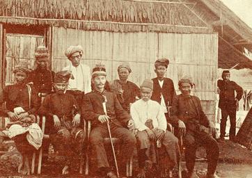 Keywords: Luitenant Vis, waarnemend controleur met hoofden van Selimoen.jpg en Luitenant Vis als waarnemend controleur Eigen Haard 1898 nvt 1898 PD-old Aceh War Aceh nobility Controleurs of the Netherlands Indies Royal Dutch East Indies Army