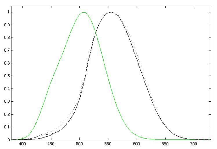 | Keywords: Luminosity.png Graph of photopic luminosity function black including CIE 1931 solid Judd-Vos modified dashed and Sharpe Stockman Jagla Jägle 2005 dotted ; and scotopic luminosity function CIE 1951 green Using data from http //web archive org/web/20070927222337/http //www cvrl org/database/text/lum/ssvl2 htm http //www cvrl org/database/text/lum/ssvl2 htm “ Sharpe Stockman Jagla Jägle http //web archive org/web/20081228083025/http //www cvrl org/database/text/lum/vljv htm http //www cvrl org/database/text/lum/vljv htm “ Judd “Vos http //web archive org/web/20081228084047/http //www cvrl org/database/text/cmfs/ciexyz31 htm http //www cvrl org/database/text/cmfs/ciexyz31 htm “ CIE 1931 the Y column of XYZ data http //web archive org/web/20081228115119/http //www cvrl org/database/text/lum/scvl htm http //www cvrl org/database/text/lum/scvl htm “ Scotopic The horizontal axis is wavelength in nanometers Transferred from http //en wikipedia org en wikipedia; transfer was stated to be made by User Ashishbhatnagar72 2006-07-27 Original uploader was Dicklyon at http //en wikipedia org en wikipedia Released into the public domain by the author The photopic luminosity function was originally red but was changed to black to avoid confusions pointed out at en Talk luminosity function See as well File Efficacité lumineuse relative spectrale png graph original upload log page en wikipedia Luminosity png 2006-11-14 18 12 Dicklyon 570×390×8 5066 bytes <nowiki>Change red curve to black to reduce confusion </nowiki> 2006-07-27 02 43 Dicklyon 570×390×8 5118 bytes <nowiki>self-made plot of photopic luminosity function red including CIE 1931 solid Judd-Vos adjustment dashed and Sharpe Stockman Jagla Jägle 2005 dotted ; and scotopic luminosity function CIE 1951 green </nowiki> en wikipedia Dicklyon Luminosity function CIE 1951 |