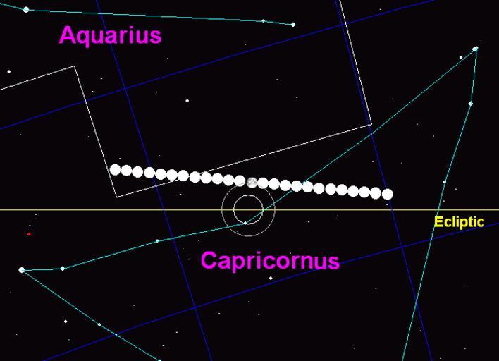 | Keywords: Lunar eclipse chart-2009aug06.png en wikipedia 2011 October 26 August 2009 lunar eclipse chart The position of the moon and earth's shadow are shown as viewed from center of earth A small parallax effect occurs from specific location on surface of the earth The yellow line is the plane of the ecliptic path of the sun through the sky and hence the center of the earth's shadow The two concentric circles centered on this line show the extent of the umbra and penumbra the zones of full and partial shadow respectively for an object in the moon's orbit The moon is drawn at maximum eclipse and circles for every hour interval of motion thumb 2009-2-18 Own <br />Transferred from http //en wikipedia org en wikipedia SockPuppetForTomruen at http //en wikipedia org en wikipedia en wikipedia SockPuppetForTomruen Original upload log page en wikipedia Lunar_eclipse_chart-2009aug06 png 2009-02-18 23 18 SockPuppetForTomruen 678×489 21113 bytes <nowiki> Summary August 2009 lunar eclipse chart The position of the moon and earth's shadow are shown as viewed from center of earth A small parallax effect occurs from specific location on surface of the earth The yellow line is the plane of the</nowiki> 2009-02-21 18 28 SockPuppetForTomruen 669×484 22613 bytes <nowiki>oops - was wrong image fixed </nowiki> 2009 in astronomy Lunar eclipse charts |