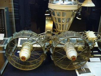 | Keywords: Lunokhod suspension system.jpg en Detail of Lunokchod's Russian lunar unmanned rover wheels and suspension pl Fragment mechanizmu kół jezdnych i zawieszenia Łunochoda rosyjskiego bezzałogowego łazika księżycowego own Regnard 2009-09-19 Eksponowany w Muzeum Kosmonautyki i Technologii Rakietowych w St Petersburgu / Displayed in Museum of Cosmonautics and Rocket Technology St Petersburg Lunokhod program Wheels | ||||