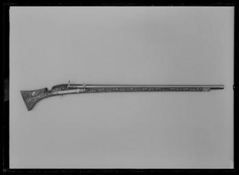 | Keywords: Luntlåsmusköt, 1500-talets slut, Tyskland eller Nederländerna - Livrustkammaren - 19106.tif LSH artwork sv Åttsidig slätborrad pipa stämplad 3 ggr under kammaren med oval bladliknande figur Vid pipan fäst fängpanna rektangulär med fasad underkant svängbart fängpannelock punsad dekor arm med svarvad knopp krutskärm med konturerad överkant och infälld i spår i pipan hög fästskruv med svarvad knopp Svansskruv med åttsidig platta av pipans bredd rektangulärt blad Rektangulärt hål vid svansskruvplattan fäste för sikte Riktmedel Stolpkorn med starkt svängd överkant Fästning Tre häften Pipan fäst med krysskruv underifrån samt två pipstift av ben och ett av stål Luntlås med hävstångsmekanism rektangulärt platt låsbleck l 295 mm i båda ändrarna bladformiga flikar med punsad dekor hål för låsskruvarna Hane med oregelbundet rund något välvd kropp genombruten av hål på ryggsidan svängd hals med mittås platt drakformigt konturerad luntklämma punsad dekor Klämskruv med c-formigt huvud På låsbleckets inisda ovanför hävstångsfjäderns fäste tre små triangulära stämplar Fästning Två låsskruvar C-formig bred och platt avtryckare Rektangulärt avtryckarbleck av ben med rundade hörn graverad dekor Helstock av valnöt med muskötkolv och sluten laddstocksränna Yttäckande inläggningar av ben och pärlemor rankor lister och rundlar På kolvens vänstra sida en oval pärlemorplatta med en graverad naken yngling droppformig pärlemorplatta med graverad maskaron ur vars mun rankverket utgår På kolvens h sida en pärlemorplatta med bröstbild av en man med lagerkrans om håret dräkt med fyrkantig urringning En droppformig platta saknas Utefter bakkanten band av benplattor med graverade harar den nedre plattan på båda sidor saknas Hälbeslag av mässing bakplåt av ben med graverad palmettliknande dekor större delen av bakplåten saknas kolvtån avslagen På kolvryggen en benplatta med graverad bladdekor halva plattan saknas Bakom svansskruvbladet graverad benplatta på båda sidor därom urtag för större plattor som nu saknas Framför den bakrel åsskruven en oval pärlemorplatta med gravera dekor naken man med ymnighetshorn en bit av plattan avskalad Rörka av ben med graverad lejonmaskaron Näsbandet saknas liksom varbygeln Ovanför låsblecket stämplat I 67 I urtaget för benplattan till vänster om svansskruvbladet skrivet med blyerts 56 I original caption end other date century 16 steel e12 - eldvapen - pipa och lås material stål - bone e8 - eldvapen - stockdekor material ben - brass e7 - eldvapen - stockbeslag material mässing - mother-of-pearl e8 - eldvapen - stockdekor material pärlemor - walnut e3 - eldvapen - stock material valnöt g 7190 size mm 1240 pipa size mm 1612 LRK K Krigskollegium Sverige Gustav II Adolf av Sverige triangel anv e1 - eldvapen - pipa; anonym låssmed place of origin NL förmodad DE förmodad original filename LN_B16972_019852 38555 inventory number LRK 3123 19106 CC0 Luntlåsmusköt 1500-talets slut Tyskland eller Nederländerna - Livrustkammaren - 19106-negative tif Muskets Media contributed by LSH dim-with multiple size templates Media contributed by LSH 2016-12 |