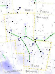 | Keywords: Lupus constellation map ru lite.png en Lupus constellation map in Russian ru Ка та созвездия Волка на усском языке It was created using the programs PP3 Miktex 2 5 GhostScript and Gimp At http //pp3 sourceforge net PP3's homepage you also get the input scripts necessary for re-compiling the map The yellow dashed lines are constellation boundaries the red dashed line is the ecliptic and the shades of blue show Milky Way areas of different brightness The map contains all Messier objects except for colliding ones The underlying database contains all stars brighter than 6 5 All coordinates refer to equinox 2000 0 The map is calculated with the equidistant azimuthal projection the zenith being in the center of the image The north pole is to the top The horizontal lines of equal declination are drawn for 0° +10° +20° etc The lines of equal rectascension are drawn for all 24 hours Towards the rim there is a very slight magnification and distortion own 2007-02-23 Anton Gutsunaev Constellations maps russian |