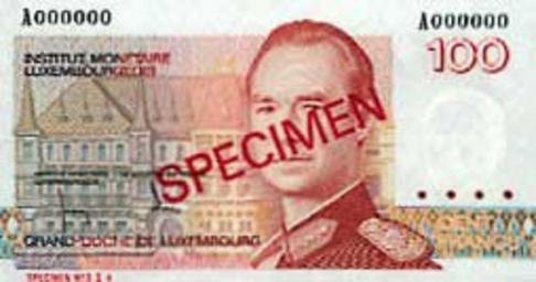 Keywords: LUX-100f-anv.jpg lb 100 frang es 100 francos Banque Centrale du Luxembourg Banque Centrale de Luxembourg banknote European Central Bank photo Money-EU Banknotes of Luxembourg Banknotes with a face value of 100