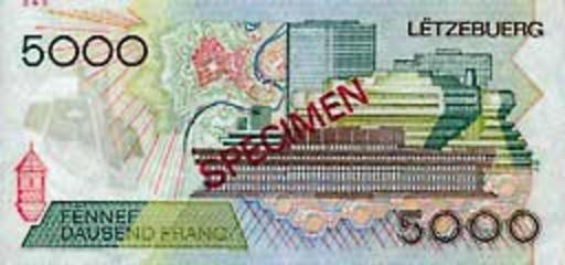 Keywords: LUX-5000f-rev.jpg lb 5 000 frang es 5 000 francos Banque Centrale du Luxembourg Banque Centrale de Luxembourg banknote European Central Bank photo Money-EU Banknotes of Luxembourg Banknotes with a face value of 5000