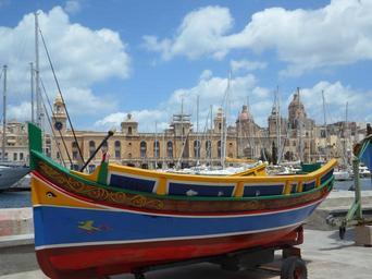 Keywords: luzzu fishing boat port colorful valletta malta city