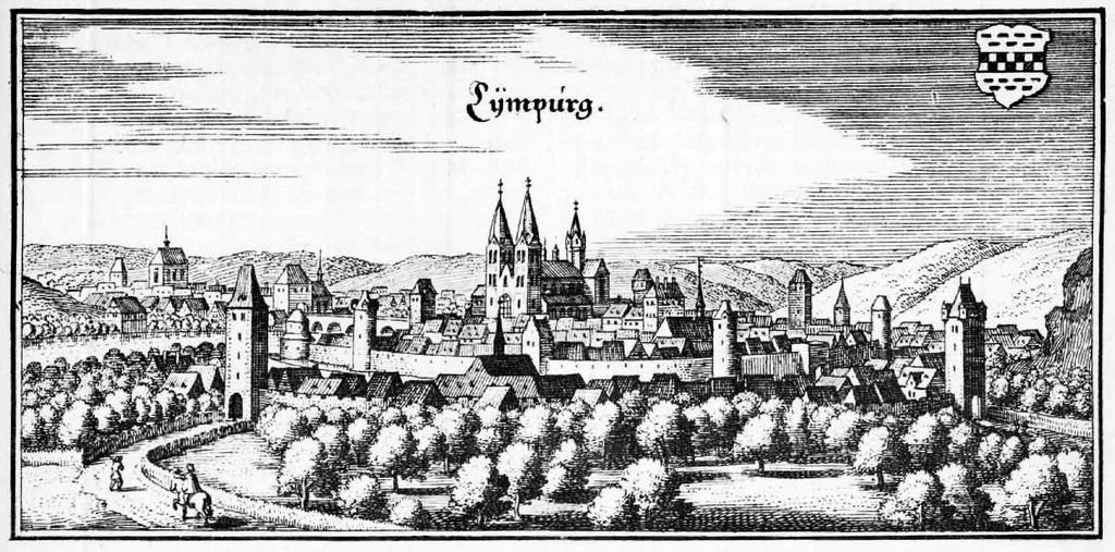 Keywords: Lympurg (Merian).jpg Historic views of Limburg an der Lahn Limburg an der Lahn in the 17th century Coats of arms from Limburg an der Lahn