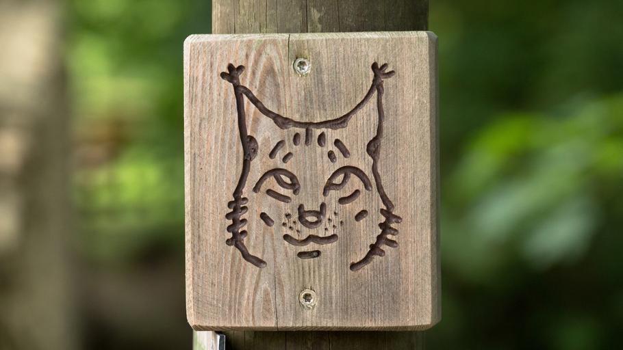 Keywords: lynx signpost waypost waymark wood wooden hiking direction nature trail orientation outdoors guide-post harz harz mountains path guidepost sign trekking wild cat