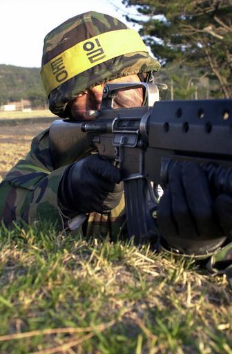 | Keywords: M16A1 rifle DN-SD-03-16679.jpg A Republic of Korea ROK Soldier aims his 5 56mm M16A1 rifle with 40mm M203 grenade launcher attached while conducting beach assault training during combined Exercises Reception Staging Onward Movement and Integration/Foal Eagle 2002 RSOI/FE 02 RSOI is an annual combined/Joint Command Post Exercise held by Combined Forces Command Republic of Korea and US Forces Commanders to train and evaluate command capabilities to receive US forces from bases outside of Korea Foal Eagle is a Counter Infiltration Field Training Exercise 2002 marks the first time that the two major exercises have been conducted simultaneously http //www dodmedia osd mil/DVIC_View/Still_Details cfm SDAN DNSD0316679 JPGPath /Assets/2003/Navy/DN-SD-03-16679 JPG 2002-03-23 JO2 SW STACY YOUNG USN public domain PD-USGov M16 rifle with M203 Males with M203 Foal Eagle 2002 |