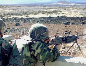 | Keywords: M249 FN MINIMI DM-SD-02-03650.jpg US Marine Corps Private First Class J Heredia fires at a target with the M249 Squad Automatic Weapon and US Marine Corps Private J Williams PFC Heredia's Assistant Gunner both of whom are from the Headquarters Company of the 3rd Marine Regiment watches his impact area These Marines fired at a range in the Pohakuloa Training Area Hawaii Substandard image Location POHAKULOA TRAINING AREA HAWAII HI UNITED STATES OF AMERICA USA Camera Operator LCPL TY HARDIN USMC Date Shot 29 Jan 2001 source http //www dodmedia osd mil/DVIC_View/Still_Details cfm SDAN DMSD0203650 JPGPath /Assets/Still/2002/Marines/DM-SD-02-03650 JPG PD-USGov M249 light machine guns 2001 photographs Military people in 2001 2001 in Hawaii 2001 events in the United States 29 January January 2001 in the United States PASGT Battle Dress Uniform in 2001 Male soldiers People of the United States in 2001 Pohakuloa Training Area United States Marine Corps training Military people on duty |