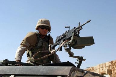 | Keywords: M249 FN MINIMI DM-SD-06-04197.jpg US Marine Corps USMC Lance Corporal LCPL Steve Reyes wearing dark glasses Weapons Company Co 2nd Battalion BN 7th Marine Regiment 1st Marine Division MARDIV stands up through a High-Mobility Multipurpose Wheeled Vehicle HMMWV M1038 Up-Armored Heavy Cargo/Troop Carrier roof turret hole and readies the FNMI 5 56 mm M249 Squad Automatic Weapon SAW while participating in a Security and Stabilization Operation SASO in Abu Hayat Al Anbar Province Iraq conducted during Operation IRAQI FREEDOM Location ABU HAYAT AL ANBAR IRAQ IRQ Camera Operator LCPL KEVIN C QUIHUIS JR USMC Date Shot 29 Jul 2004 source http //www dodmedia osd mil/DVIC_View/Still_Details cfm SDAN DMSD0604197 JPGPath /Assets/Still/2006/Marines/DM-SD-06-04197 JPG PD-USGov M249 light machine guns |