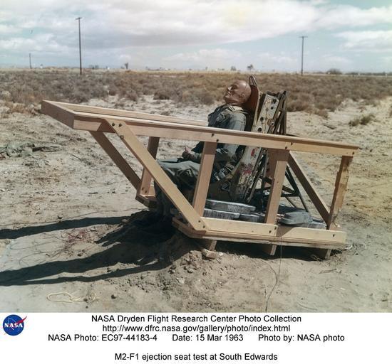 View Original:M2-F1_ejection_seat_test_at_South_Edwards_DVIDS690454.jpg (1536x1430)