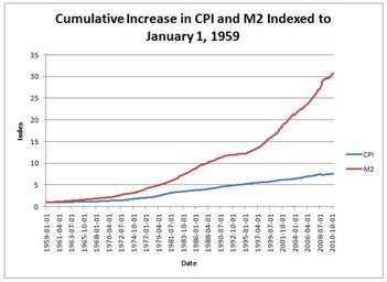 Keywords: M2.vs.CPI.png en This chart contrasts the difference in inflation of the money supply the M2 with inflation in a basket of goods CPI own Gut Monk 2011-03-07 Cc-zero Check categories 2011 March 9 en wikipedia Inflation 1 Inflation