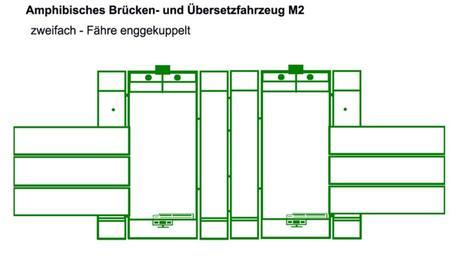 Keywords: M2 Zweifach eng.png en Amphibious bridge vehicle M2 wide double ferry use de Amphibisches Brücken- und à bersetztfahrzeug M2 Fährbetrieb Zweifachfähre enggekuppelt own Steinbeisser 2 2 11 Cc-zero Schwimmschnellbrücke M2B