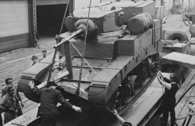 | Keywords: M3-Stuart-Australia-1.jpg An American M3A1 Stuart light tank provided by Lend-Lease is unloaded onto a tank transporter at the Australian port of Melbourne Victoria on 20 February 1943 for use by an Australian armoured division <br/> <br/> Original U S caption American lend-lease equipment is playing a vital part in the development of United Nations mechanized forces Here an American light tank to be used for training Australia's armored crews is unloaded at an Australian port <br/> Original Australian caption MELBOURNE VIC 1943-02-20 ARRIVAL IN AUSTRALIA OF LEASE-LEND MATERIALS FROM AMERICA PERSONNEL OF AN AUSTRALIAN ARMOURED DIVISION EXCITEDLY AWAIT THE SETTLING IN TO POSITION OF A GENERAL STUART M3A1 LIGHT TANK ON TO THE SPECIAL TANK TRANSPORTER PRIOR TO DRIVING IT AWAY FOR IMMEDIATE OVERHAUL Author 1943-02-20 Library of Congress Prints Photographs Division Farm Security Administration - Office of War Information Photograph Collection Reproduction number http //hdl loc gov/loc pnp/fsa 8b08136 LC-USE6-D-009207 and date from http //www awm gov au/collection/029385/ PD-Australia File M3-Stuart-Australia-1 8b08136u tif uncropped 8-bit TIFF same resolution M3A1 Stuart |