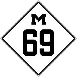 Keywords: M-69 1926.svg Old style M-69 Shield Own 2008-02-27 Stratosphere Own work all rights released Public domain 1926 Michigan state trunk line highway shields 069 69 number
