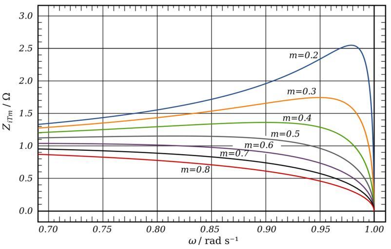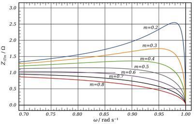 | Keywords: M-Derived Low-pass Image Impedance.svg m-Derived low-pass shunt filter for < <sub>c</sub> for various values of m <sub>c</sub> is normalised to unity own Inductiveload 2009-01-24 Mathematica Code <pre><nowiki> winfwc_ m_ wc/ Sqrt1 - m 2 ; zitmw_ wc_ m_ Sqrt1 - w 2/ 1 - w/winfwc m 2 ; p Plot Table zitmw 1 m m 0 2 0 8 0 1 w 0 7 1 </nowiki></pre> M-Derived filters Image impedance | ||||