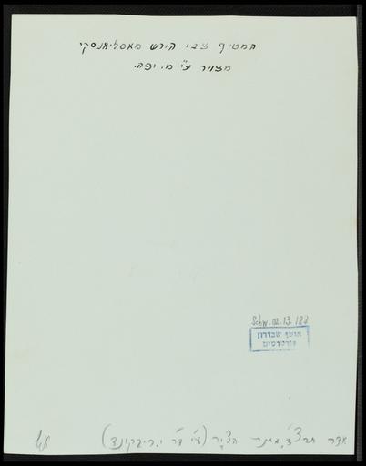 Keywords: M.S. Joffe. Zvi Hirsch Masliansky. B.jpg Zvi Hirsch Masliansky he תצ ו רפרודוקציה מציור דיוקנו ש צבי הירש מסי נסקי מאת הצייר מ יפה M S Joffe הדפס כסף שחור בן 11X14 ס מ תצ ו רפרודוקציה זה נתר אוסף הספרייה ה אומית בשנת 1934 ע ידי הצייר עצמו < 1934 he הדפס כסף שחור בן cm 11 14 Institution National Library of Israel Schwadron collection place of discovery object history exhibition history credit line accession number place of creation http //primo nli org il/primo_library/libweb/action/display do tabs viewOnlineTab gathStatTab true ct display fn search doc NNL_ARCHIVE_AL002782065 indx 1 recIds NNL_ARCHIVE_AL002782065 recIdxs 0 elementId 0 renderMode poppedOut displayMode full frbrVersion dscnt 0 vl 127845559UI0 sub vl 169492597UI1 all_items scp scps scope 3A 28NNL 29 tab default_tab dstmp 1452730476208 vl freeText0 Masliansky 2C 20Zvi 20Hirsch 2C 201856-1943 vid NLI mode Basic National Library of Israel http //rosetta nli org il/delivery/StreamGate dps_pid FL12178649 dps_dvs 1452732625233~578 direct <gallery> File M S Joffe Zvi Hirsch Masliansky jpg Front File M S Joffe Zvi Hirsch Masliansky B jpg Backward </gallery> PD-old-auto 1941 Zvi Hirsch Masliansky Mark Joffe National Library of Israel Schwadron collection |