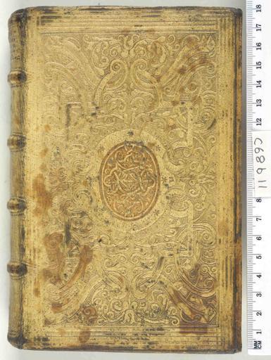 | Keywords: M. T. Ciceronis Philosophicorum pars secunda - Upper cover (c68b11).jpg Style Centrepiece Panel design; Caption Upper cover; Colour White / cream; Edge Gauffered exhibition history Decorative Technique Panel stamp in blind; Cover Material Pigskin alum tawed Macchi states; bound during the last quarter of the 16th century in Tübingen by a Samuel Streler successor The panel stamp appears in Tübingen in several variants Ilse Schunke considers a variant the work of Samuel Streler whose name was recorded at Tübingen university in 1550 and who worked for Duke Christoph His activity is certified until 1577 but his workshop was active until 1618 Similar panel-stamp bindings are kept in 1 Berlin National Library A Schmidt Bucheinbände aus dem 14 -19 Jahrhundert pl XLVIII p 23 fig 74 on Handlungen Des Allgemeinen Concilumbs Wolches gehalten worden vber dem Span Tübingen Georg Gruppenbach 1582; Idem p 24 pl XLIX fig 76 on Hieronymi Cardani Mediolanensis medici de vtilitate ex adversis capienda libri III Basileae per Henricvm Petri 1561; 2 München National Library on Michael Maestlin Ephemerides novae Tübingen 1580 shelfmark 4° Eph astr 67 F Geldner Bucheinbände aus elf Jahrhunderten pl LXVI fig 92 ; 3 Rome Biblioteca Angelica on Martin Crusius Civitas coelestis seu Catecheticae conciones Tubingae apud Georgium Gruppenbachium 1587 shelfmark o 4 33 Ludwig III coat-of-arm Biblioteca Angelica Roma Legature di pregio p 48 n 22 ; 4 Schweinfurt Municipal Library M Hahn Schweinfurts Drucker Buchbinder und Buchhändler col 643 pl 22 For further bibliography see A von Arnim Einbandkunst n 67 on Abraham Buchholzer Chronologia Görlitz A Fritsch 1584; Collegio Borromeo Pavia Legature rinascimentali e barocche p XXXII n 58 on Cicero M Tullius Epistolarum ad familiares libri XVI apud Petrum Santeandrum 1580; F Geldner Pfalzgrav Philipp Ludwig von Neuburg 1574-1614 pl 8; E Ph Goldschmidt Gothic and Renaissance bookbindings n 254 on Valerius Maximus Antwerp Plantin 1574; E Kyriss Katalog historischer Einbände n 23 with reproduction; K Haebler Rollen- und Plattenstempel II p 90 panel-stamps III and V; I Schunke Studien zum Bilderschmuck p 72 Samuel Streler Another version produced in Lauingen by Hans Wagner in 1582 is recorded Antiquariat Konrad Meuschel Bad Honnef am Rhein Seltene Bücher p 16-17 n 20 on Cicero De officis De senectute De amicitia Paradoxa Somniun Scipionis Basel ex officina Herwagiana 1584; L Gruel Manuel historique et bibliographique 1905 p 172-173; K Haebler Rollen- und Plattenstempel H W Hans Wagner Lauingen p 482; A Schmidt Bucheinbände aus dem 14 -19 Jahrhundert p 24 pl XLIX fig 77 on Educationis puerilis lingvae Latinae pars prima Argentorati Josias Rihelius 1583 p 24 pl XLIX fig 78 on Strigilis grammatica Argentorati 1585 M von Arnim Einbände n 46 on Martin Luther Ein einfeltige weise zu beten für einen guten Freund Leipzig Valentin Baptist 1551 informs about a similar panel-stamp to be seen on a cover binding bound in Saxony object history Text 1581; Strassburg; Unspecified object type Cc-zero place of creation Binding Germany place of discovery Unspecified British Library image http //www bl uk/catalogues/bookbindings/LargeImage aspx RecordId 020-000006220 ImageId ImageId 42715 Copyright BL M T Ciceronis Philosophicorum pars secunda Uploaded with GWToolset M T Ciceronis Philosophicorum pars secunda - Upper cover c68b11 http //www webarchive org uk/bldatasets/bindings/7865_4 jpg Bookbinding 16th-century bookbinding British Library Bookbindings |