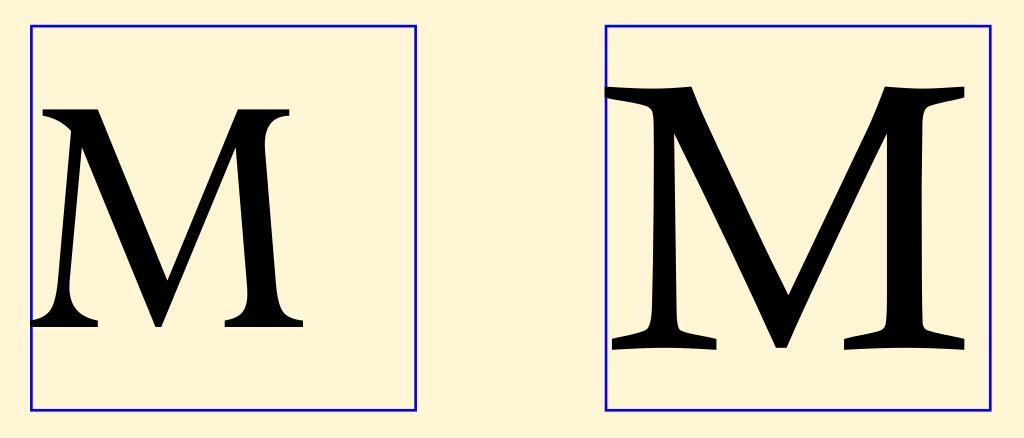 | Keywords: M versus em.svg Diagram showing that the width of a capital M is less than an em wide Proportional to the font used each box is one em square The M on the left is in Perpetua a typeface with relatively narrow characters the one on the right is in Calisto with relatively wide characters own 20 49 24 May 2007 UTC Angr M |