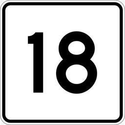 Keywords: MA Route 18.svg 600 mm by 600 mm 24 in by 24 in Massachusetts Route shield made to the specifications of the http //166 90 180 162/mhd/downloads/manuals/1996Mconst pdf 1996 edition of Construction and Traffic Standard Details sign M1-5 Uses the http //www triskele com/fonts/index html Roadgeek 2005 fonts United States law does not permit the copyrighting of typeface designs and the fonts are meant to be copies of a U S Government-produced work anyway The outside border has a width of 1 1 mm and a color of black so it shows up; in reality signs have no outside border The specs actually do not show the curve on the outside border instead making it a perfect square but all signs I have seen round the corners own SPUI spuiother Diagrams of Massachusetts Route shields Massachusetts Route 18