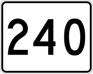 | Keywords: MA Route 240.svg 750 mm by 600 mm 30 in by 24 in Massachusetts Route shield made to the specifications of the http //166 90 180 162/mhd/downloads/manuals/1996Mconst pdf 1996 edition of Construction and Traffic Standard Details sign M1-5 Uses the http //www triskele com/fonts/index html Roadgeek 2005 fonts United States law does not permit the copyrighting of typeface designs and the fonts are meant to be copies of a U S Government-produced work anyway The outside border has a width of 1 1 mm and a color of black so it shows up; in reality signs have no outside border The specs actually do not show the curve on the outside border instead making it a perfect rectangle but all signs I have seen round the corners Note The specs specify Series D font for the numbers However that font does not fit when none of the characters is a one and so those signs actually use Series C This image is true to real signs not the specs own SPUI spuiother Diagrams of Massachusetts Route shields 240 number |