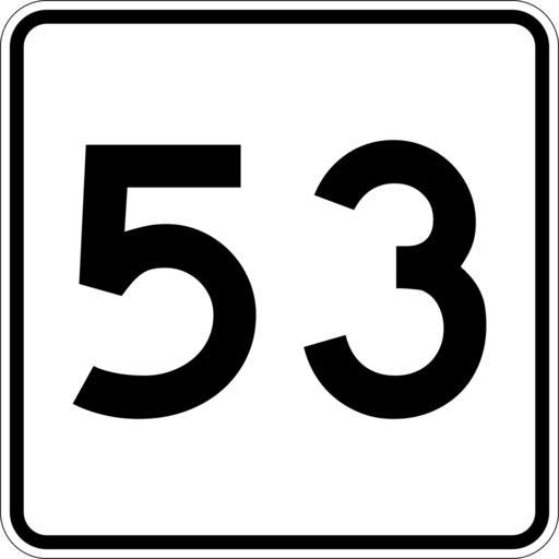 | Keywords: MA Route 53.svg 600 mm by 600 mm 24 in by 24 in Massachusetts Route shield made to the specifications of the http //166 90 180 162/mhd/downloads/manuals/1996Mconst pdf 1996 edition of Construction and Traffic Standard Details sign M1-5 Uses the http //www triskele com/fonts/index html Roadgeek 2005 fonts United States law does not permit the copyrighting of typeface designs and the fonts are meant to be copies of a U S Government-produced work anyway The outside border has a width of 1 1 mm and a color of black so it shows up; in reality signs have no outside border The specs actually do not show the curve on the outside border instead making it a perfect square but all signs I have seen round the corners own SPUI spuiother Diagrams of Massachusetts Route shields Massachusetts Route 53 |