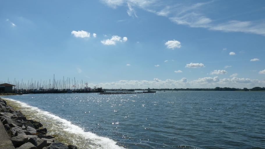 Keywords: maasholm schlei water germany mecklenburg boats nature port summer sunny sky clouds rest sun beautiful