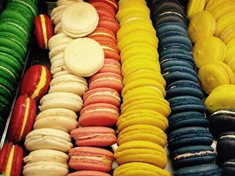 Keywords: macarons colorful pastries delicious candy small cakes portugal cafe benefit from sweet bake yellow black vanile
