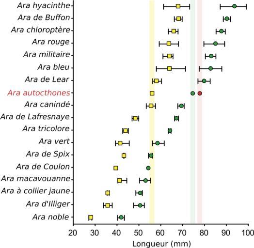| Keywords: Macaw-bone-sizes-fr.svg fr Graphique du métacarpien cases jaunes et tibio-tarse cercles verts et rouges tailles pour toutes les espèces d'aras Données vertes et jaunes sont établies sur la base Olsen 2008 et le point rouge sur la base de Wetmore de 1937 2012-10-24 12 24 17 File Macaw-bone-sizes svg KimvdLinde derivative work Augusta 89 <gallery> File Macaw-bone-sizes svg En </gallery> cc-zero Uploaded with UploadWizard Ara Anodorhynchus Cyanopsitta Orthopsittaca Primolius Diopsittaca | ||||