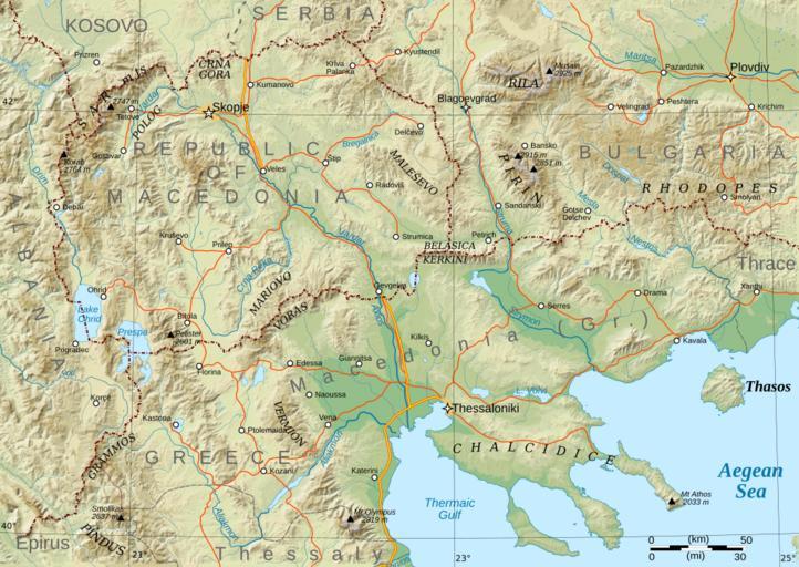 | Keywords: Macedonia topography (texts).svg en Alternative version of File Macedonia topography svg with label texts preserved as SVG text elements for purposes of further editing Note this version will not display correctly in Mediawiki and in many browsers It is intended only as a basis to work from when translating or modifying the map For actual display use the version with label texts converted to paths own Future Perfect at Sunrise 2009-01-31 100px <br> Macedonian version Translation possible SVG maps of Greece Topographic maps of Greece SVG maps of the Republic of Macedonia Topographic maps of the Republic of Macedonia SVG maps in English Maps of Macedonia |