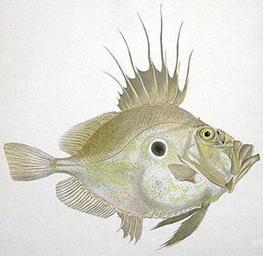 | Keywords: MacGillivray, William John Dory crop.jpg Uploaded with en wp UW marker 2016 11 24 John Dory illustrated by William MacGillivray Original publication Part of the largely unpublished collection of the work of William MacGillivray 1796-1852 The collection was presented to The Natural History Museum by MacGillivray's son Paul in 1892 <br/> Immediate source MacGillivray _William_John_Dory jpg 1892 William MacGillivray<br/> Life time 1796-1852 PD-old-100-1923 Zeus faber William MacGillivray | ||||